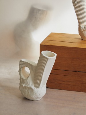 私たちの周囲にあるあらゆるものに風化をもたらす「時間」という存在。その中で、水を注ぎ、花を生けるといった生命の行為を通じて活性化されるこれらのオブジェは、日常の営みの美しさを讃えています。