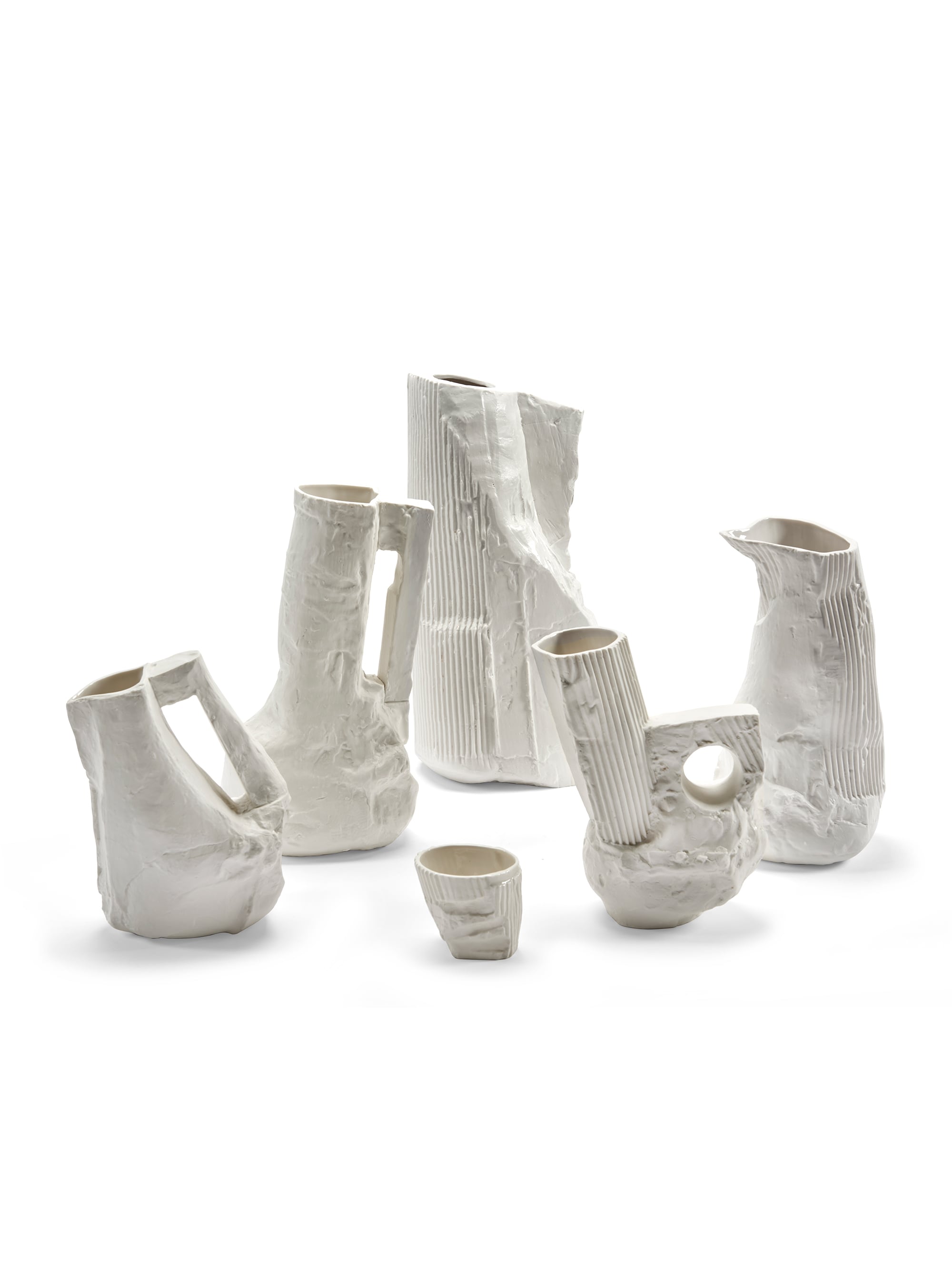 古代の美とモダニズムが溶け合い、風化した彫刻のように、不完全さを美しさとして考える。直観的な手仕事から生まれたカラフェです。