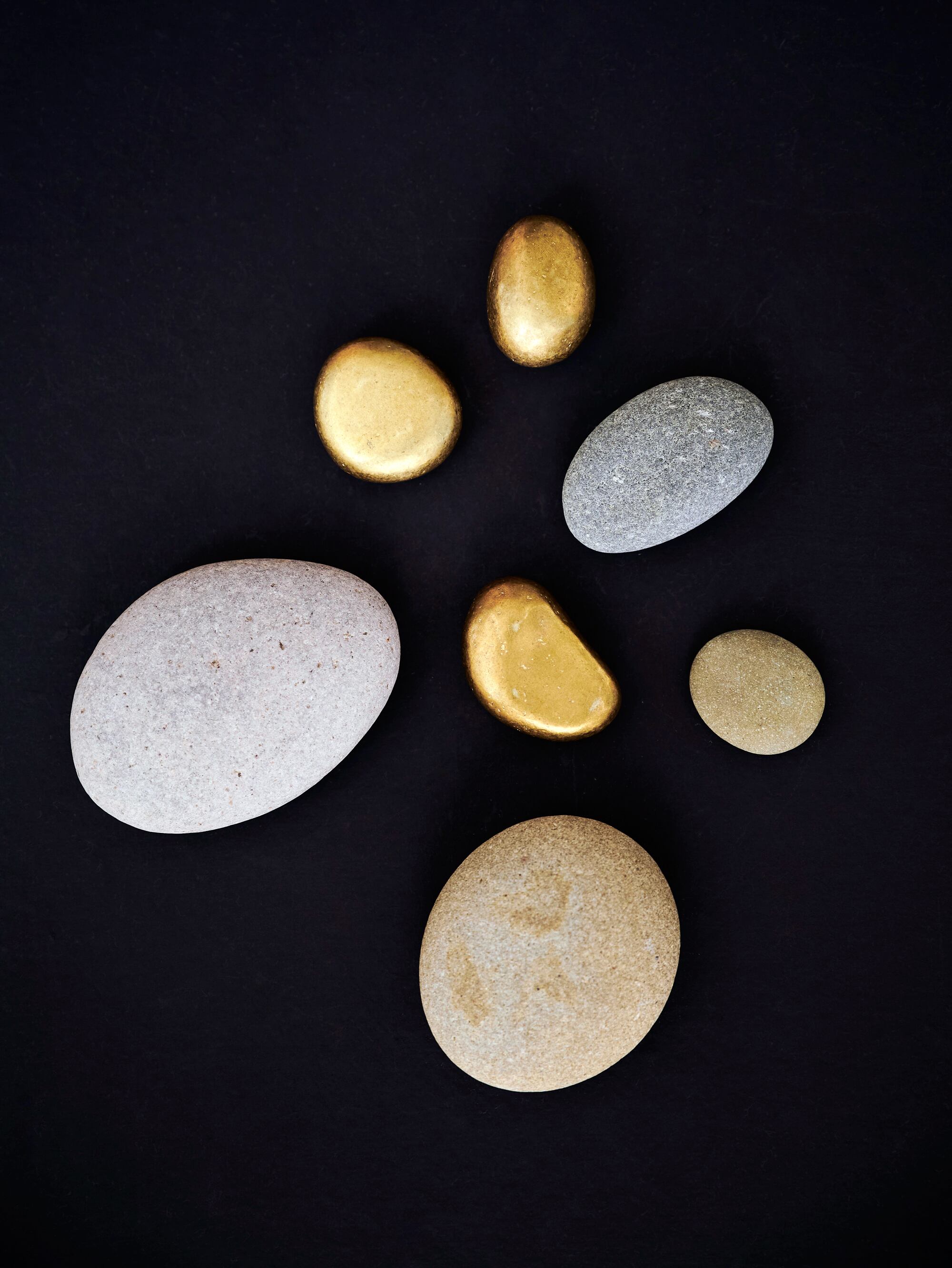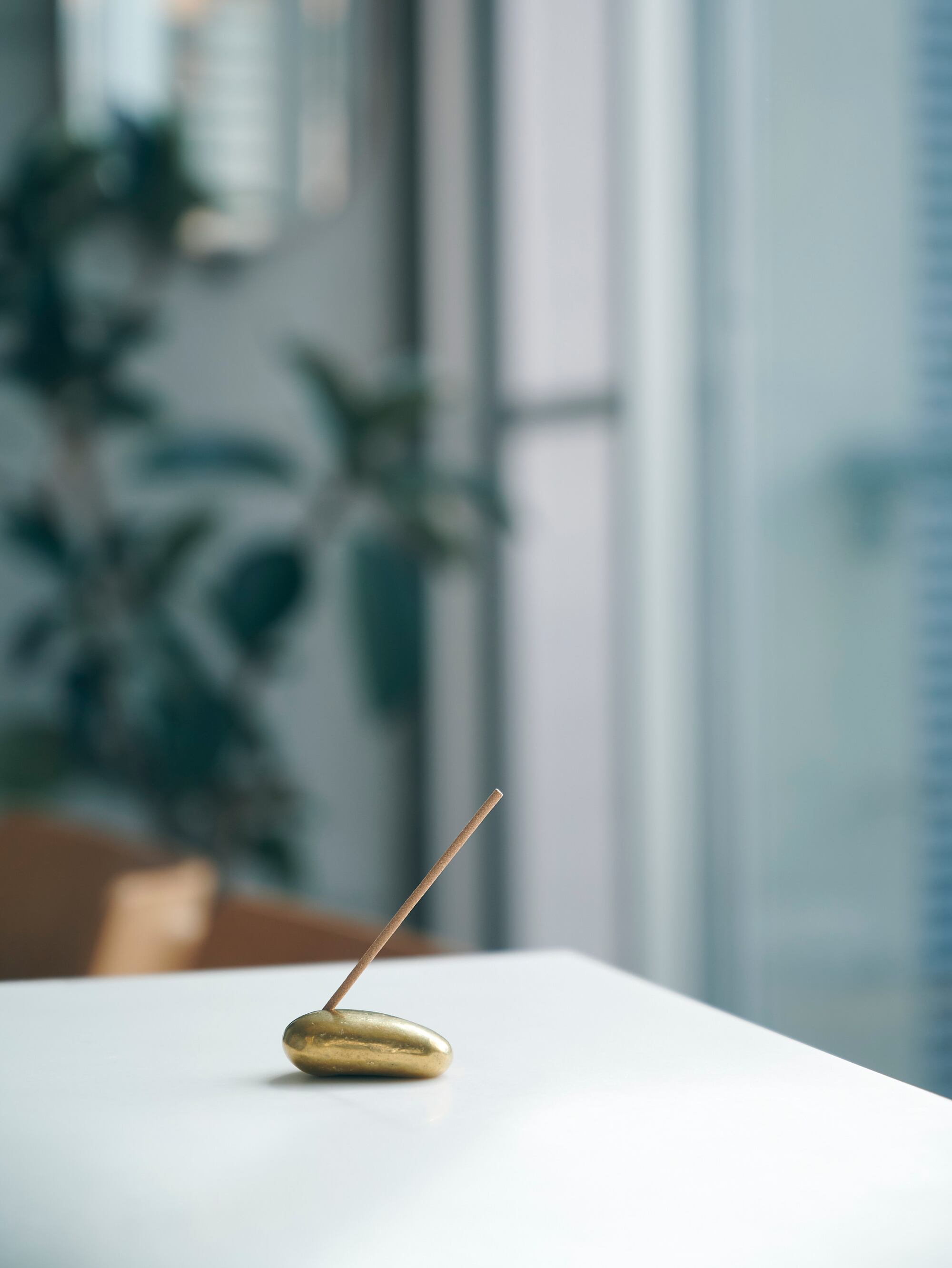 長い年月をかけて意図せず角の取れた石たちを真鍮のお香立てに仕上げました。