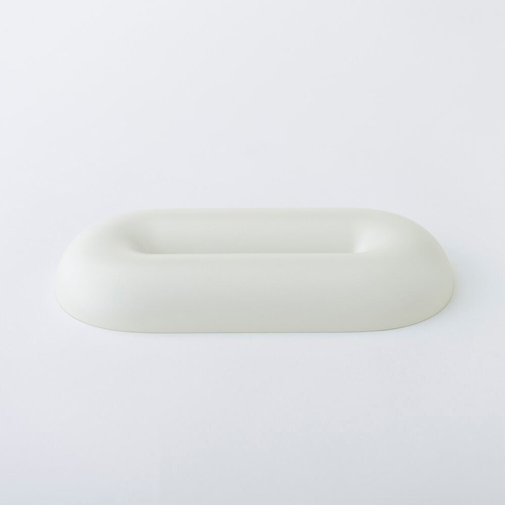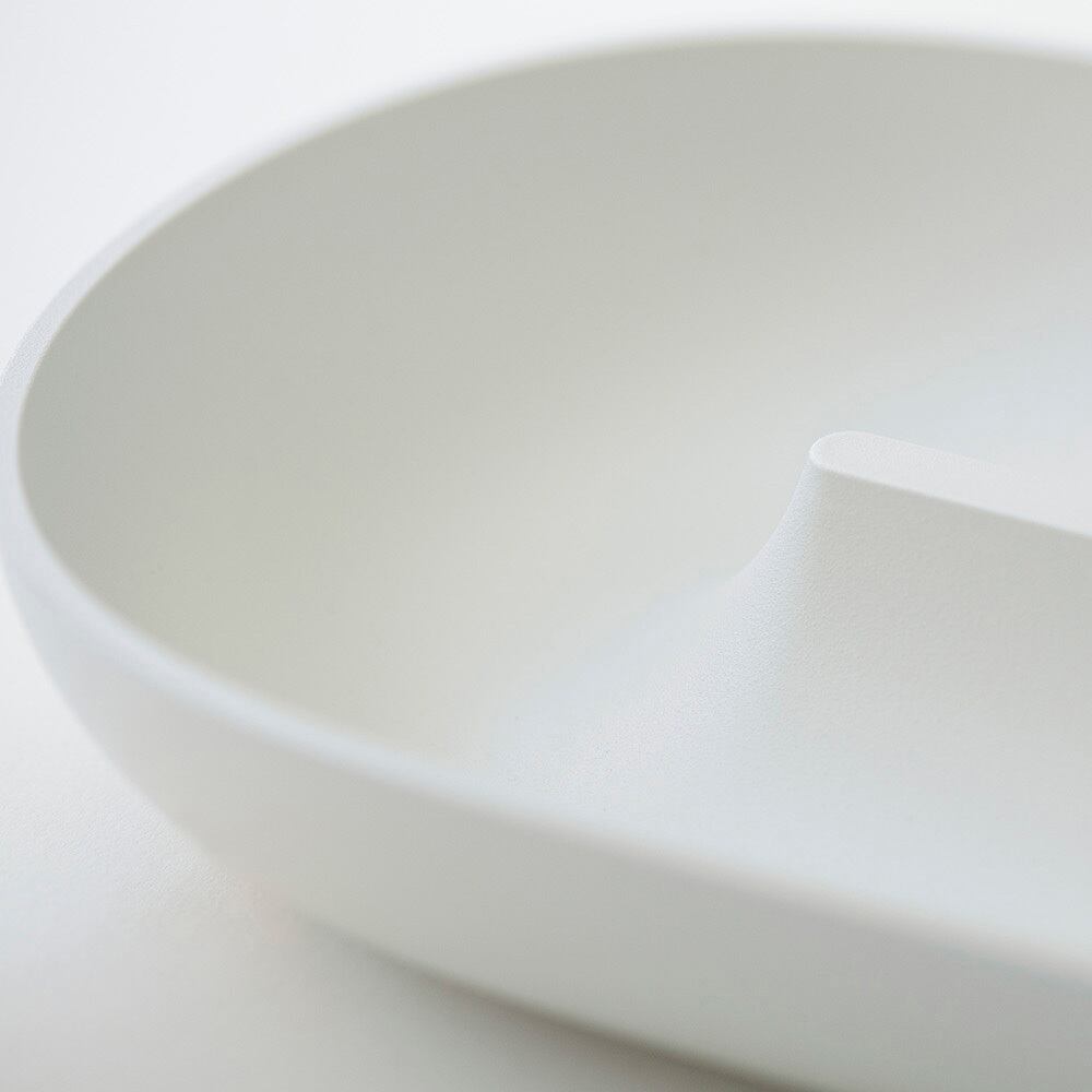 漆器の盛り皿やプレートのゆるやかな仕切りをイメージしたハーフパイプの フォルム。