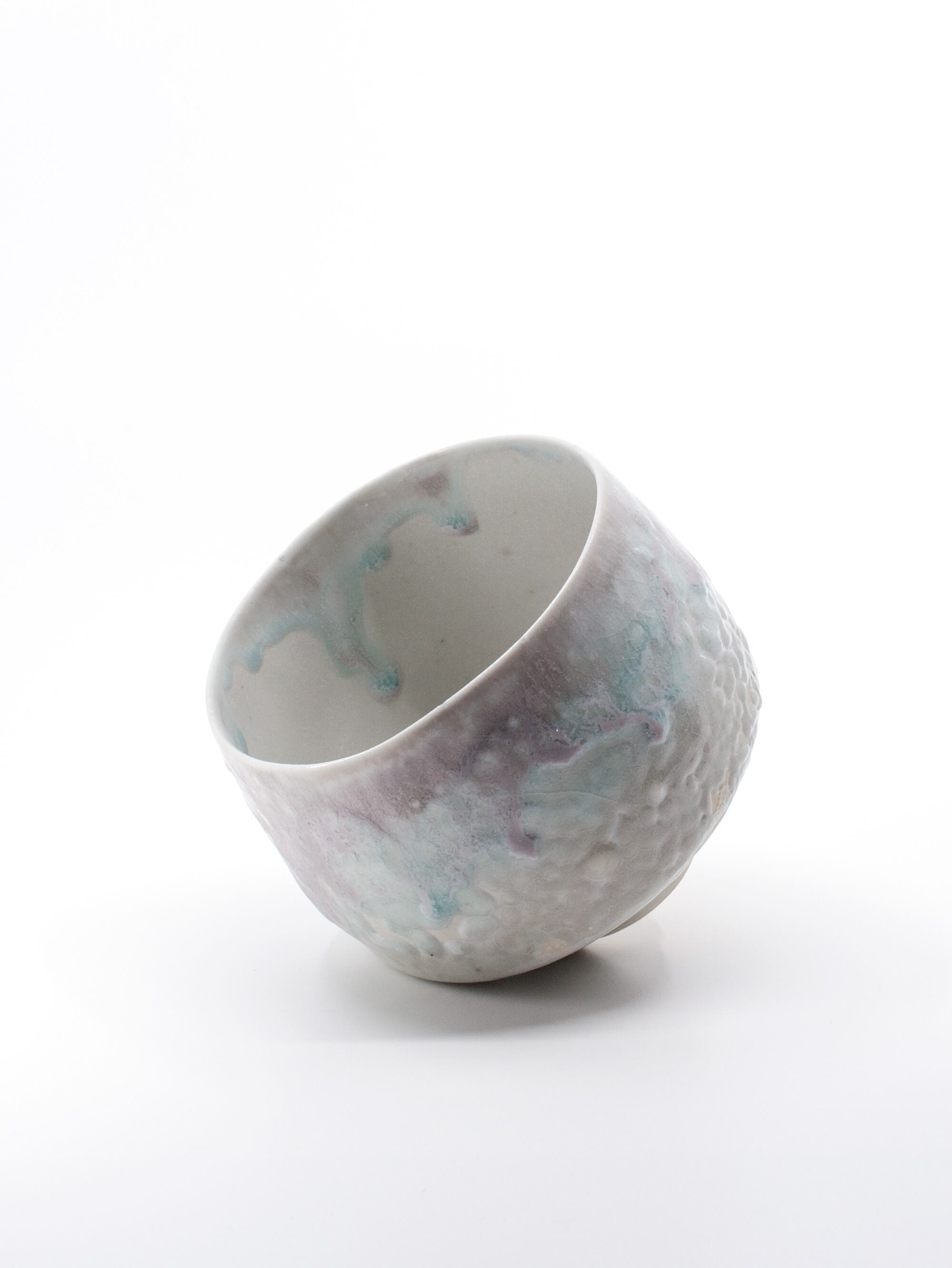 何層にも重なった淡い色と表面のテクスチャーが美しいカフェボウル。