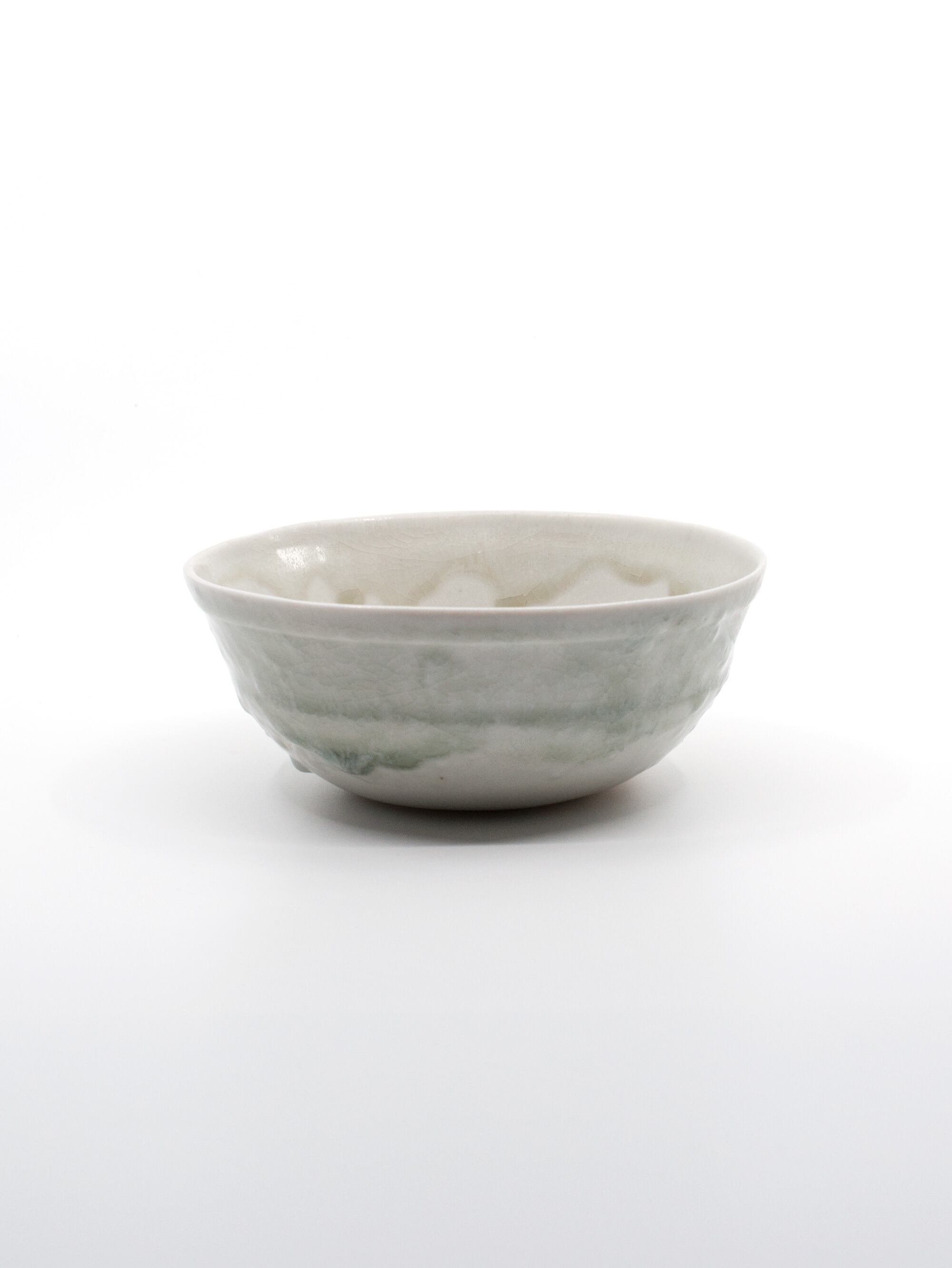 淡い灰緑色の美しさ。縁や鉢内部の色の変化も見ていて飽きません。